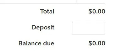 - You record the amount received in the field for deposit. QuickBooks online will deduct the amount of the deposit field from the total.