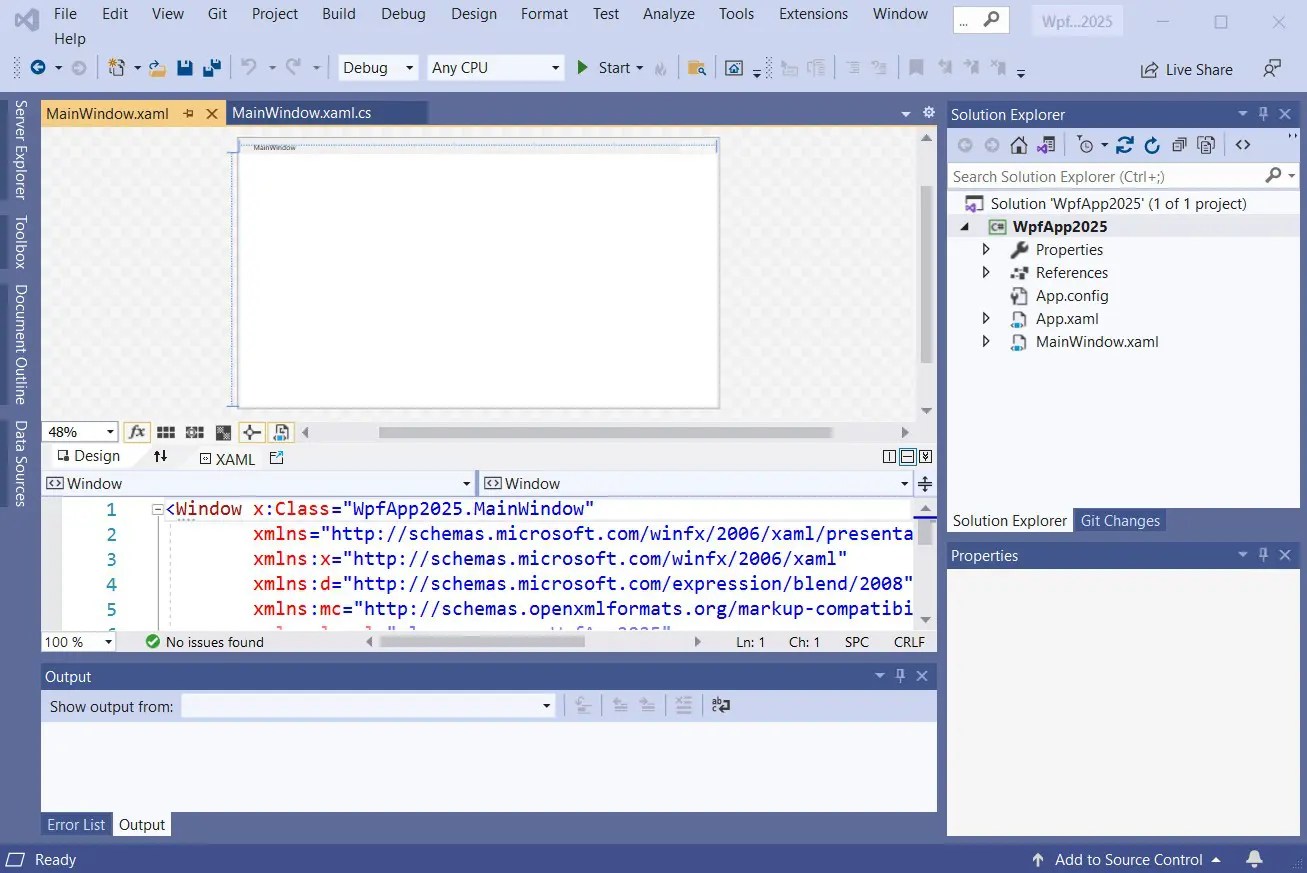 We’ve created the project called with a solution name of WpfApp2025. You can change the height and width of the main window. We have added a label. We have made some changes to the text and appearance of the label. You can change the XAML or you can use the Properties window (F4) to make the changes. The red arrows and text were added to the screenshot with Adobe Photoshop to help explain what we did.
