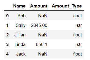 # Let's add a column to the DataFrame df['Amount_Type'] = df['Amount'].apply(lambda x: type(x).__name__) df