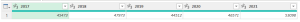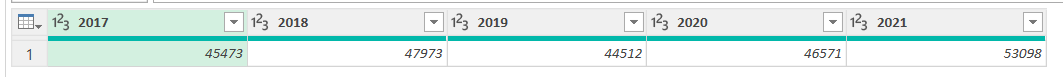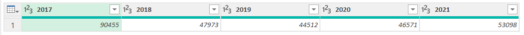 When we transpose this we find that the year 2017’s sales value is aggregated into a sum.