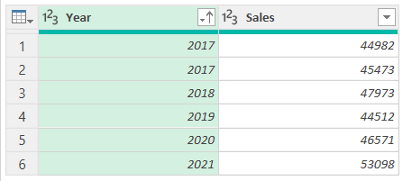 Notice that in this second example we have duplicate years. We have two rows of yesr 2017.