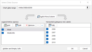 Below is what the Data Source looks like. Note that the Year is not in the Legend Entries list on the left side.