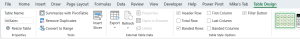 Below is a screenshot of the Table Design tab (menu). Notice below that I have given my table a name in the Table Name box: tblSales.