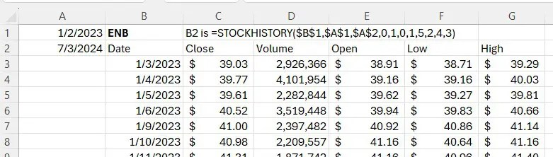 The STOCKHISTORY function requires a Microsoft 365 Personal, Microsoft 365 Family, Microsoft 365 Business Standard, or Microsoft 365 Business Premium subscription.