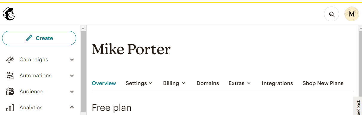 Once you have created account at MailChimp, you can review some of your settings. After logging in, click on the icon in the upper right corner. Click Account & Billing.