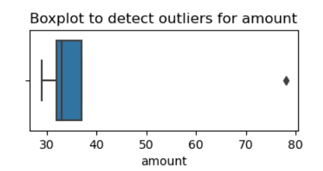 Another way to check for outliers is to create a boxplot. Let’s consider a simple example. You have a DataFrame called df. You have a column called amount. You can use seaborn to create a boxplot.
