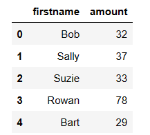 data = {'firstname': ['Bob', 'Sally', 'Suzie', 'Rowan', 'Bart'],
