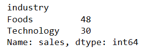 df_ind_sales = df.groupby(by="industry")['sales'].sum() df_ind_sales