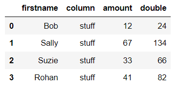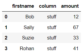 data = {'firstname': ['Bob', 'Sally', 'Suzie', 'Rohan'],