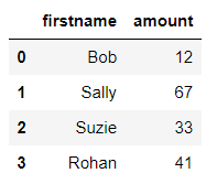 0 Bob 1 Sally 2 Suzie 3 Rohan Name: firstname, dtype: object
