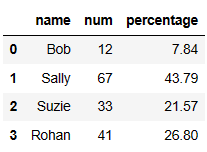 df['percentage'] = ((df['num'] / total) * 100).round(2)