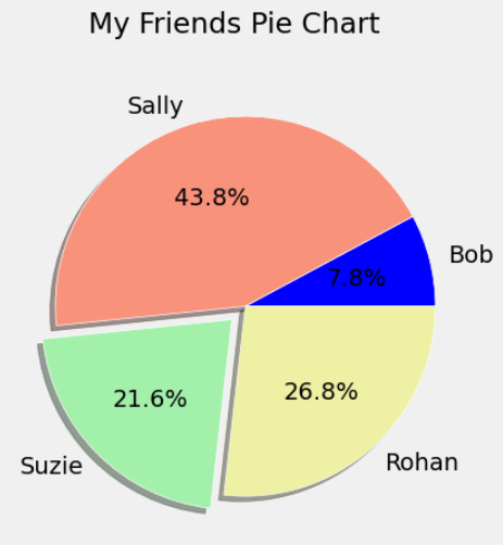 Let’s create and show a pie chart. I have brought back the colors in the code.
