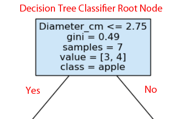 - Class is the majority class of the samples in each node, which is apples in this case.