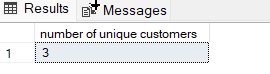 SELECT COUNT(DISTINCT custid) AS 'number of unique customers' FROM dbo.Orders;