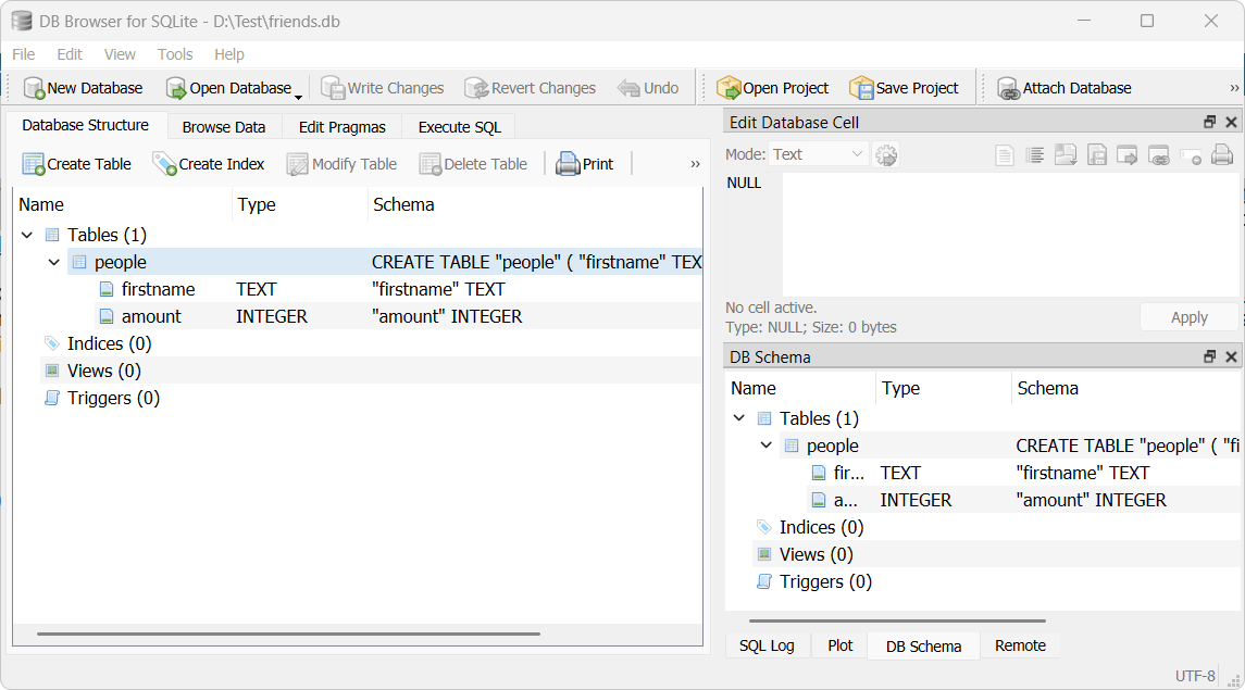 I’m using Windows 11 and below is a screen shot of DB Browser for SQLIte with a database called friends that is open in the app.