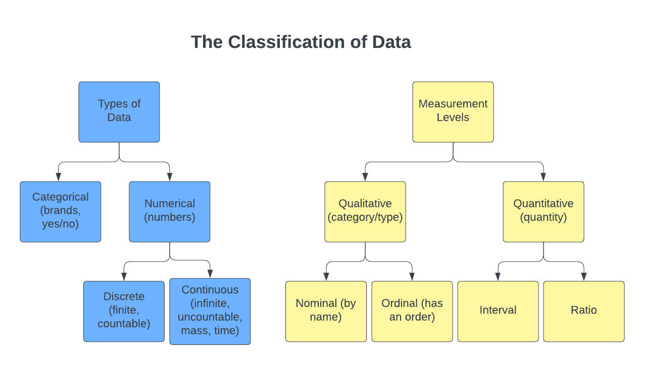 Are you starting out in your exploration of what it is like to be a data professional? This is a good place to start. We need to understand the different types of variables we will be working with in our datasets. To do that we will classify data because different types of variables require different types of statistical and visualization approaches.