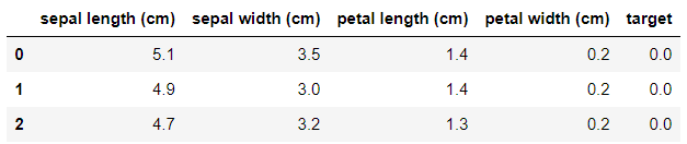 columns= iris['feature_names'] + ['target'])