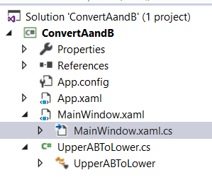 Here is the class file I created. It is called UpperABToLower.cs.